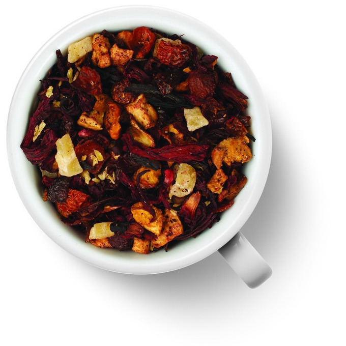 Краткое описание: Чайный напиток на основе гибискуса с кусочками яблок и ананаса, кокосовой стружкой и кожурой шиповника, и сладким карамельным ароматом.
