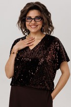 Джемпер из трикотажного полотна интерлок, прямого кроя. Короткий втачной рукав. По горловине отложной вязаный воротник, по центру декор металл. По спинке средний шов с застежкой на молнию.