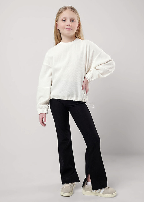 Стильные джинсы-клёш с разрезами-то, что нужно для создания классного повседневного образа! Модель выполнена из хлопкового материала с добавлением эластана для большего комфорта. Создавай луки с футболками и свитшотами из новой коллекции и будь в тренде!