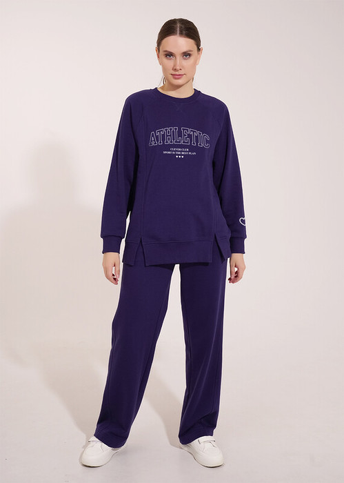 Брюки прямые спортивные из трикотажного полтна футер. По талии притачной пояс на внутренней резинке. Боковые карманы с отрезным бочком. Боковые швы переходят на перед.