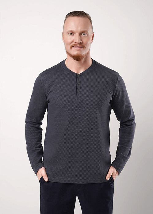 Джемпер из трикотажного фактурного полотна ""ячейка"". Изделие с удобной планкой на пуговицы и дополнено дизайнерским принтом. Данная модель отличное дополнение к брюкам или джинсам. Прекрасно подойдёт для встречи с друзьями.