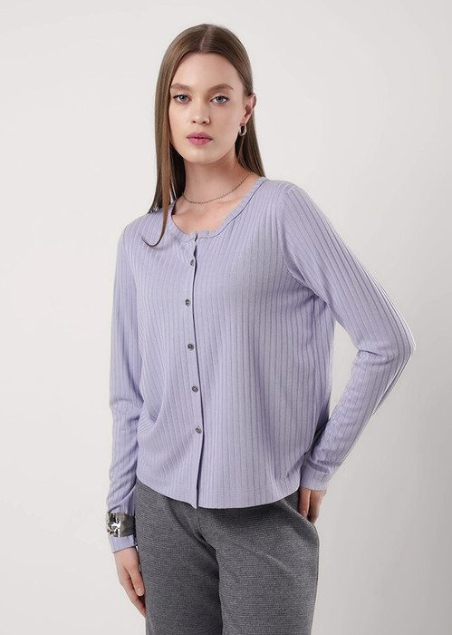 Джемпер прямого силуэта из вискозного трикотажного полотна кашкорсе с застежкой на пуговицы. Втачной длинный рукав. Округлая горловина с окантовкой.