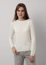 Джемпер из трикотажного полотна вискоза вязанная. Округлая горловина с окантовкой. Втачной длинный рукав. Перед двойной (нижний слой со средним швом и разрезом внизу).