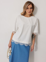 Джемпер прямого силуэта из плотного хлопкового трикотажного полотна с втачным длинным рукавом. Округлая горловина с обтачкой. По переду горизонтальный рез. По низу рукава шлица с внутренней контрастной манжетой.