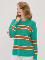 Вязаный джемпер прямого силуэта из вискозной пряжи с добавлением нейлона. Длинный втачной рукав. Основное переплетение гладь. Округлая горловина с бейкой. По низу изделия и рукавов узкие манжеты, нашивка металл.
