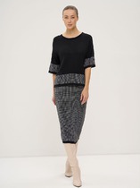 Вязаный джемпер прямого силуэта, жаккардового переплетения из акриловой пряжи. Втачной длинный рукав. Округлая горловина с бейкой. По низу изделия и рукавов манжеты.