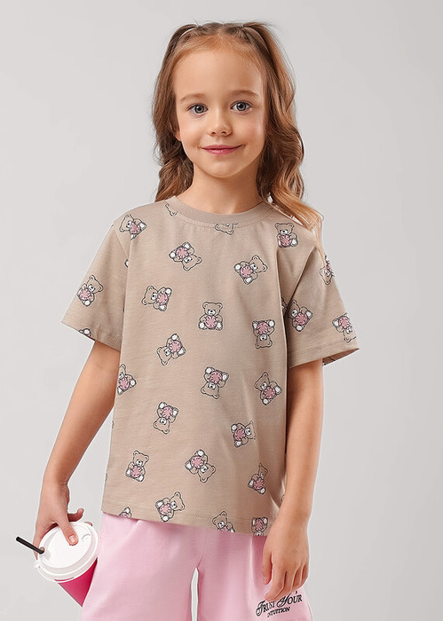 Совместные закупки Екатеринбург Детская одежда Футболки, майки — Clever Футболка детская для девочки CLE 866748кдн бежевый/чёрный