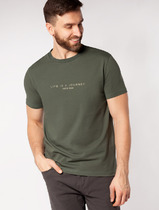 Футболка мужская с круглым вырезом горловины и коротким втачным рукавом из фактурного полотна ""флам"" с растительной набивкой. Футболку дополняет имиджевая фурнитура. Подойдет для прогулок с друзьями.