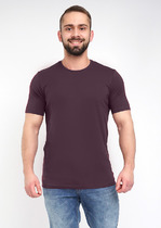 Базовая однотонная футболка стандартного объема с круглой горловиной, втачным рукавом из хлопкового полотна с добавлением эластана. Является неотъемлемой частью мужского гардероба.