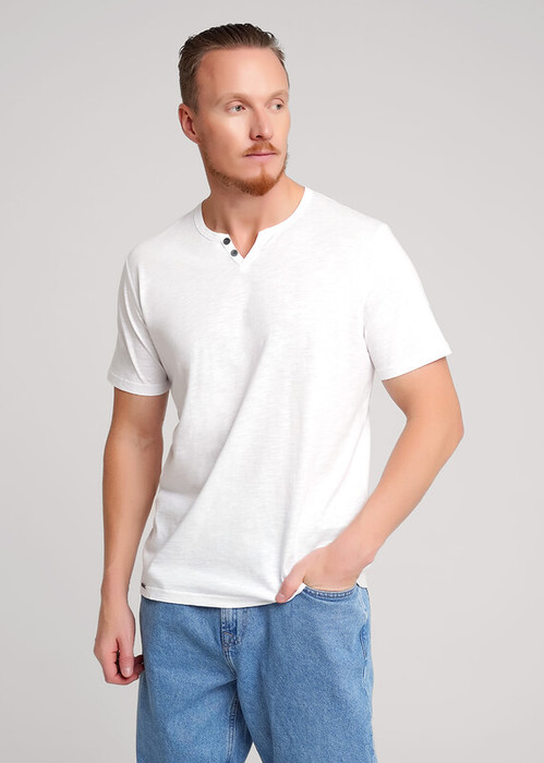 Футболка мужская с округлой горловиной и планкой из фактурного полотна флам. Данная модель прекрасно комбинируется с джинсами или шортами. Модель дополнена имиджевой фурнитурой. Отличное решение на лето для прогулок с друзьями или поездки на отдых.