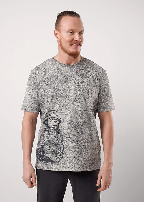Футболка мужская в набивку увеличенного объёма из дышащего хлопкового полотна с округлой горловиной и коротким рукавом. Оригинальность модели придаёт дизайнерский принт. Прекрасное решение для создания уютного домашнего образа.