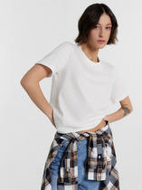 Джемпер умеренного объема из хлопкового трикотажного полотна. Втачной короткий рукав. Округлая горловина с окантовкой.