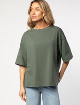 Футболка женская из эластичного полотна с хлопком и модалом в составе. Короткий рукав. Круглый вырез горловины. Фирменный жаккардовый логотип.