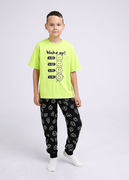 Совместные закупки Екатеринбург Детская одежда Пижамы, одежда для сна — Clever Комплект мал. CLE 909530кд_п св.зелёный/чёрный
