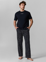 Набор мужской состоящий из футболки и брюк. Футболка из фактурного полотна ""флам"" с декоративной планкой на пуговицы и с дизайнерским принтом. Брюки из плотной кулирной глади в мелкую графику на эластичном поясе с функциональными карманами и шнуром.