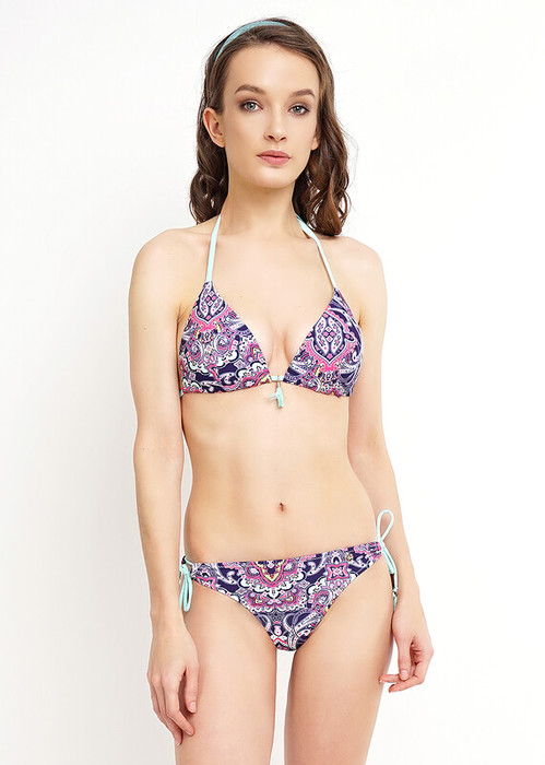Купальник с треугольными чашками с push-up. Трусы с регулируемыми по ширине завязками.