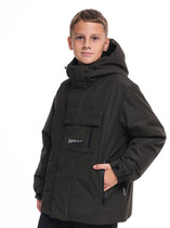 Легкая куртка из блестящей болони на хлопковом подкладе. Карманы в боковом шве. Капюшон и низ изделия на резинке с регулировкой. Украшена тесьмой с тейпом по рукавам.