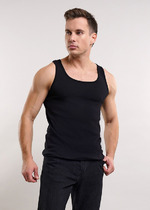 Майка мужская из хлопкового трикотажного полотна. Майка прекрасная альтернатива летней футболке. Модель дополнена минималистичным принтом по спинке и боковыми разрезами.