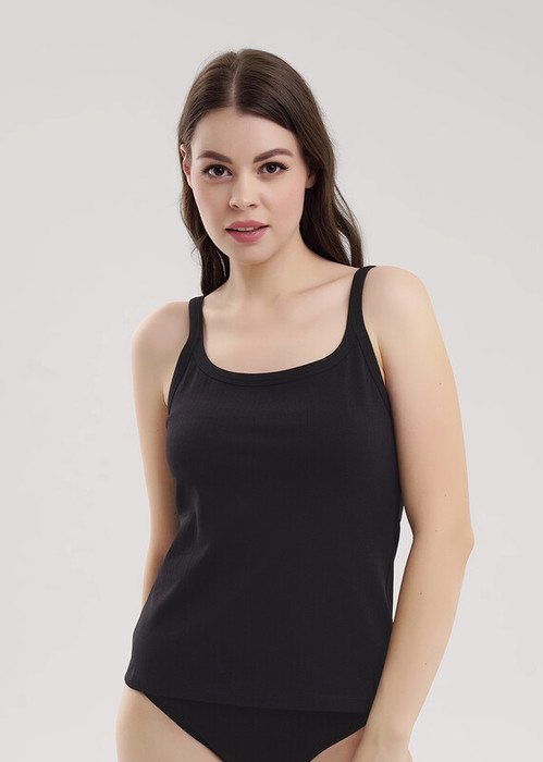 Майка прилегающего силуэта, из эластичного хлопкового полотна. Узкая бретель.