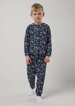Комплект хлопковой пижамы из джемпера и брюк. Джемпер свободного кроя дополнен эластичной горловиной и манжетами. Брюки среднего объема, эластичный пояс обеспечит комфорт и идеальную посадку. По низу брюк эластичные манжеты.