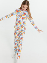 Комплект хлопковой пижамы из джемпера и брюк. Джемпер свободного кроя в набивку дополнен эластичной горловиной и манжетами. Брюки среднего объема, эластичный пояс обеспечит комфорт и идеальную посадку. По низу брюк эластичные манжеты.