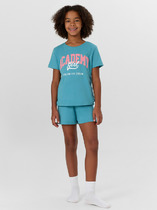 Комплект хлопковой пижамы из футболки и брюк. Футболка свободного кроя дополнена эластичной горловиной и стильным принтом- набивкой. Брюки свободного покроя, эластичный пояс обеспечит комфорт и идеальную посадку.
