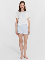 Набор одежды из трикотажного полотна с добавлением модала.Футболка прямого кроя, короткий втачной рукав. Спереди принт. По низу переда кружево.Бриджи по талии пояс на резинке, киперная лента. Боковые карманы с отрезным бочком. Внизу брюк манжет с кантом.