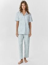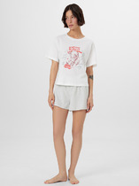 Набор одежды для дома и отдыха из трикотажного полотна. Футболка прямого силуэта из трикотажного полотна. Округлая горловина с обтачкой. Короткий втачной рукав. На полочке и спинке принт. Шорты с притачным широким поясом на резинке, принт.