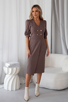 Платье прямого силуэта из трикотажного полотна, длиной ниже колена. Короткий втачной рукав. Округлая горловина с обтачкой. По бокам разрезы.