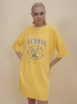 Платье для дома из трикотажного полотна рибана. Прямого силуэта, короткий втачной рукав. По бокам разрезы. На детали переда принт. Округлая горловина с обтачкой из рибаны.