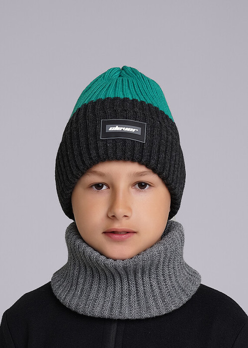 Clever Шапка детская CLE 433816ап флис меланж т.серый/зелёный