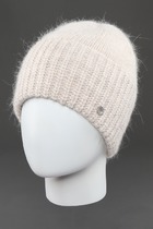 Женская двойная шапка без отворота, связаная ластичным переплетением, выполнена из пряжи с содержанием высококачественной ангоры.