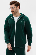 Модная куртка с капюшоном на молнии из плотного трикотажного полотна будет незаменимой вещью в гардеробе любого мужчины, благодаря функциональным карманам "кенгуру" и стильной отделке в виде нашивок.