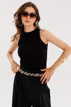 Майка топ укороченная из трикотажного полотна кашкорсе лапша с эластаном. Средняя ширина бретели. Округлый вырез горловины. По горловине, пройме окантовка. По низу изделия внутренняя резинка, по центру жаккардовая нашивка.