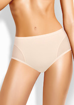 Трусы бикини женские из эластичного хлопкового полотна. По переду рез с кружевными вставками. Обработка краев по талии и ноге ажурная резинка (точечный зигзаг). По переду атласный бант.