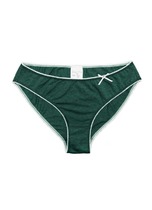 Бикини из однотонного хлопкового полотна. Модель удобной посадки. По поясу и ножкам обработаны резинкой с фестоном. На детали переда расположены симметричные кружевные вставки, отделка кружевной тесьмой. Спереди по центру - небольшой бант.