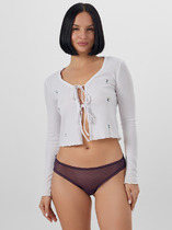 Трусы бразилиана женские из эластичного вискозного полотна - кашкорсе лапша. Обработка краев по талии - жаккардовая резинка, по ноге - узкое кружево.