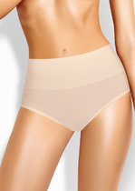 Классическая модель комфортной посадки.Деталь переда выполнена из сетки, спинка -из кружева с треугольной вставкой из сетки. По линии талии обработка резинкой с фестоном. Декоративный элемент - бант на детали переда.