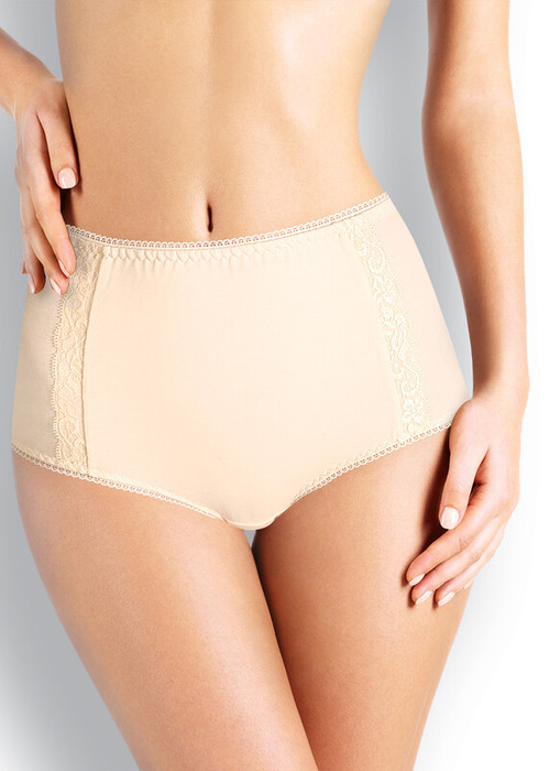 Трусы макси утяжка женские из плотного эластичного хлопкового полотна. По переду отделка кружевом и двойной слой основного полотна. Обработка краев - ажурной резинкой с фестоном.