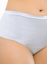 Трусы-макси женские из плотного эластичного хлопкового полотна. Обработка краев - окантовка. По переду дополнительный слой из трикотажного жаккардового полотна.