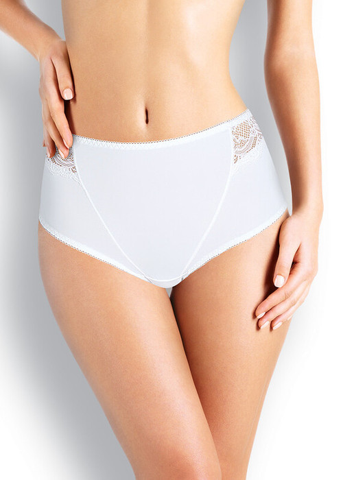 Трусы макси из эластичного полотна полиамид,по талии и ножке притачная резинка с фестоном,по переду- декоративные рельефы с боковыми кружевными вставками