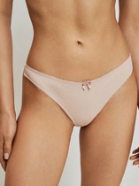 Трусы-слипы женские из эластичного хлопкового полотна. По переду резы и вставки из кружева. Обработка краев - ажурная резинка с фестоном.