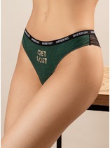 Трусы танга женские из эластичного хлопкового полотна кашкорсе лапша. Обработка краев по талии и ноге - подгибка с внутренней резинкой. Спереди на поясе по центру жаккардовая нашивка.