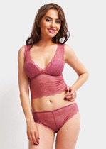 Бюстгальтер бралетт без каркасов Vintage RB7115 выполнен из кружева с ажурным орнаментальным рисунком и прямым краем. Чашки на подкладке из дубляжа с хлопком. Современный образ, безупречная посадка на фигуре и абсолютный комфорт – визитная карточка модели.