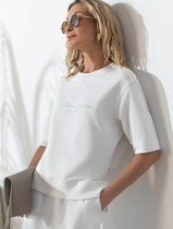 Vilatte Футболка свободная с принтом из футера двухнитки с эластаном D49.169 бел