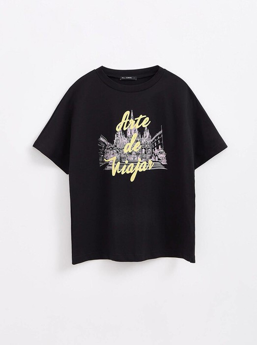 Базовая футболка прямого кроя «Аrte de viajar» из мягкого хлопка сочетает в себе минимализм и оригинальные тенденции уличной моды. · прямой силуэт· круглый вырез горловины с планкой· короткие рукава· объемный печатный рисунок «Аrte de viajar»· мягкий 100% хлопок· устойчивый цвет и сохранение формы при соблюдении рекомендаций по уходу· стильная база для повседневных образов.