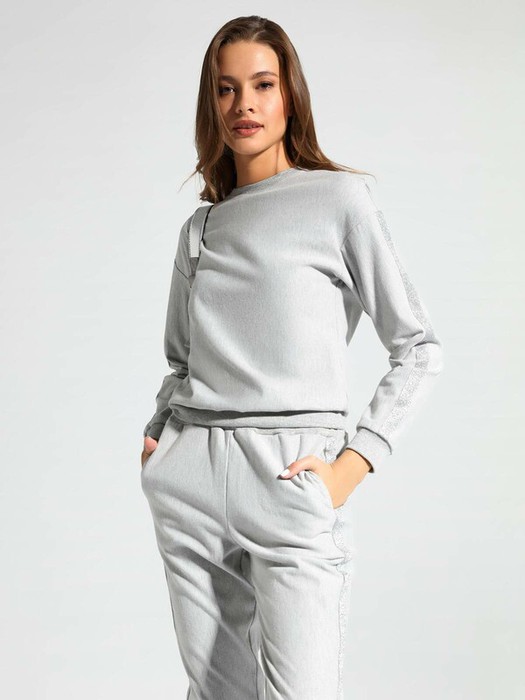 Хлопковый свитшот с легким мерцанием люрекса LD 1043 идеально дополнит повседневный гардероб современной активной девушки. Хлопковое полотно дарит абсолютный комфорт и свободу движения на протяжении всего дня. THERMAL COTTON: ультрамягкое хлопковое полотно премиального качества обеспечивает согревающий эффект и надежно удерживает тепло на протяжении всего дня. · круглый вырез горловины· длинные рукава· манжеты по рукавам и поясу· свободный крой· thermal cotton;· легкое мерцание люрекса;· лампасы с металлическим мерцанием;· сохранение формы и цвета после многочисленных стирок;· создайте total look с джоггерами Sport Lux