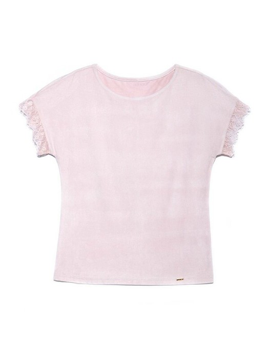 Стильный топ с приспущенным плечом выполнен из ультратонкого замшевого полотна. Рукава с деликатным кружевом помогут сделать образ элегантным, а безупречная посадка по фигуре сделает топ вашим любимым!Модель универсальна и отлично сочетается с джинсами, брюками, леггинсами, юбками и шортами.