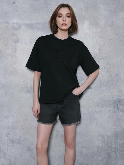 Свободная футболка из футера с вышивкой «Every day is a new chance» станет основой для множества расслабленных базовых образов.