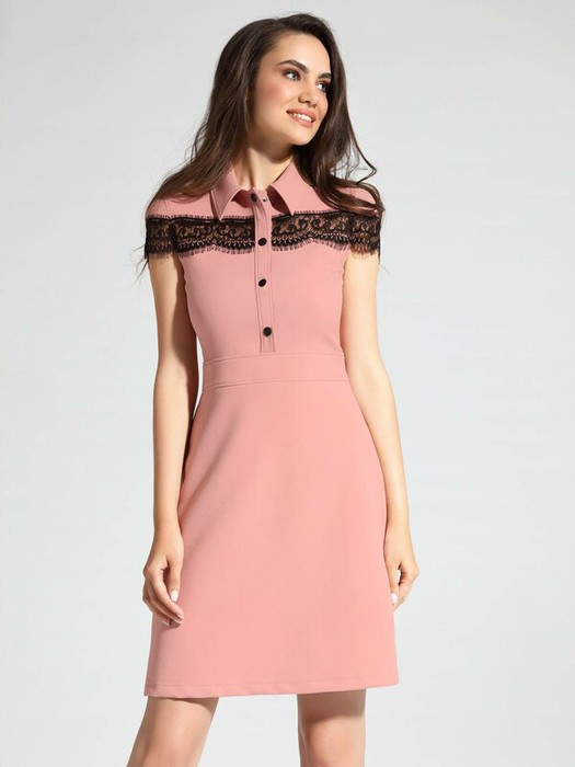 Платье приталенного силуэта с фактурным кружевом LPL 1038 - прекрасный вариант для дневного образа и офисного гардероба.